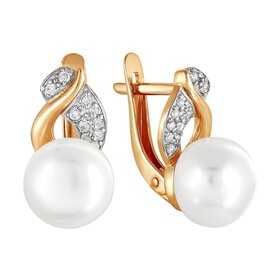 Серьги из красного золота 585° пробы с жемчугом и фианитом