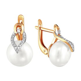 Серьги из красного золота 585° пробы с жемчугом и фианитом
