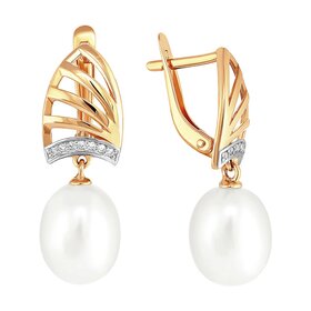Серьги из красного золота 585° пробы с жемчугом и фианитом